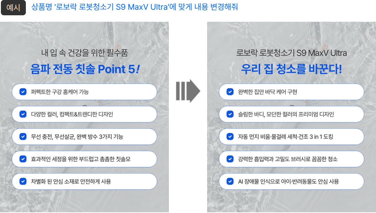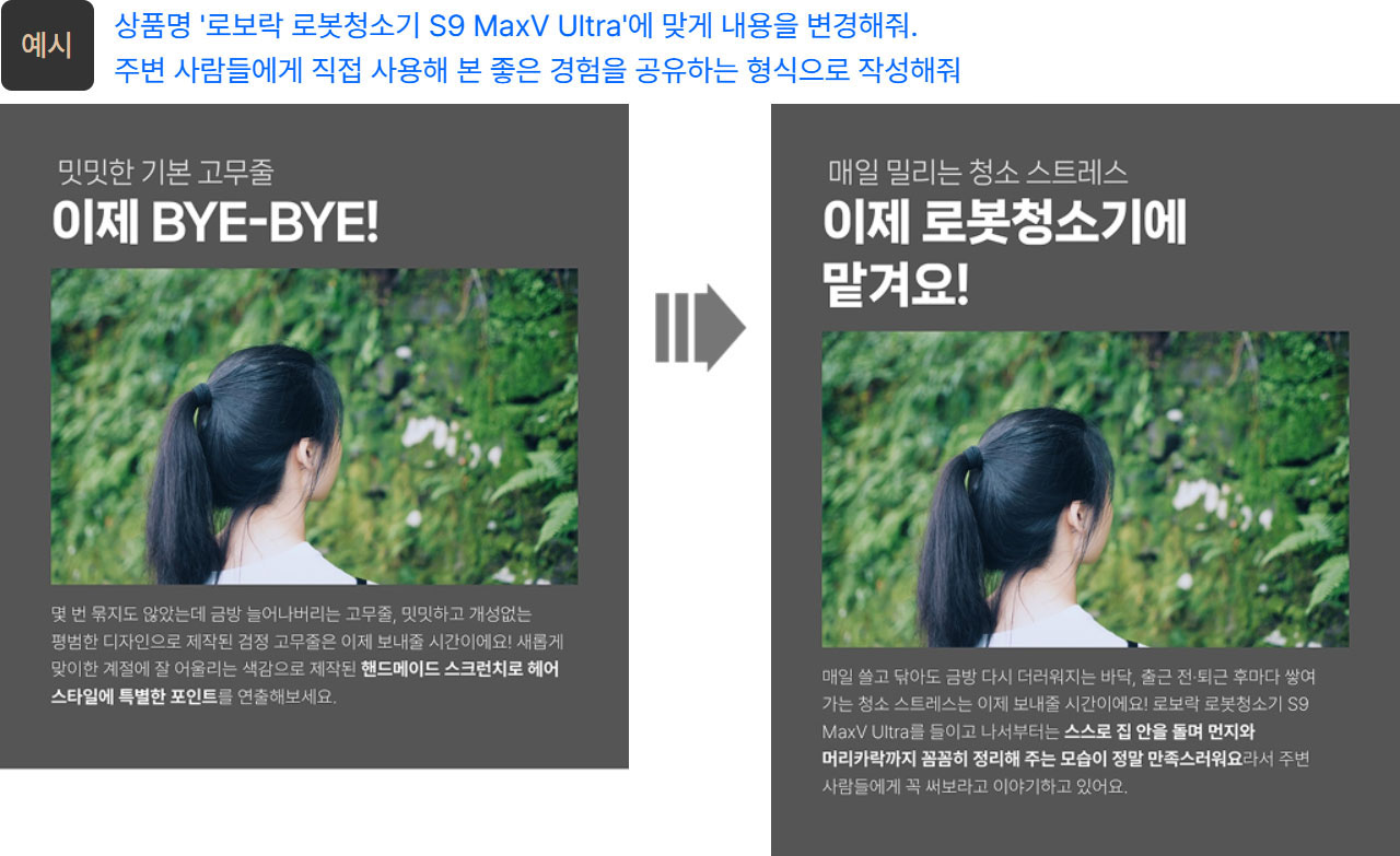 예를 들어 "특정 상품에 대한 내용을 작성해줘" 와 같은 포괄적인 명령을 사용하는 경우,