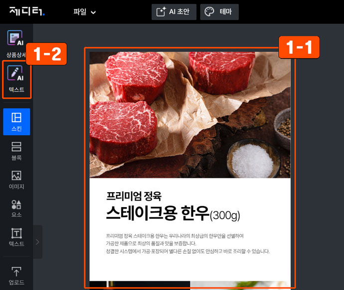 1 디자인 불러오기 및 「AI 텍스트」 메뉴 실행